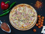 Sos de roşii, mozzarella, salam de porc, prosciutto cotto, ciuperci, ardei gras, ceapă37,99 RON73,99 RON -
